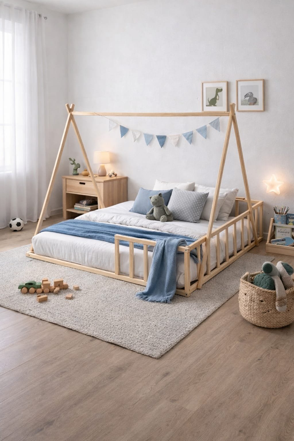 Nossa Cama Montessoriana Cabaninha tradicional, é ideal para miúdos a partir dos 2 anos de idade.