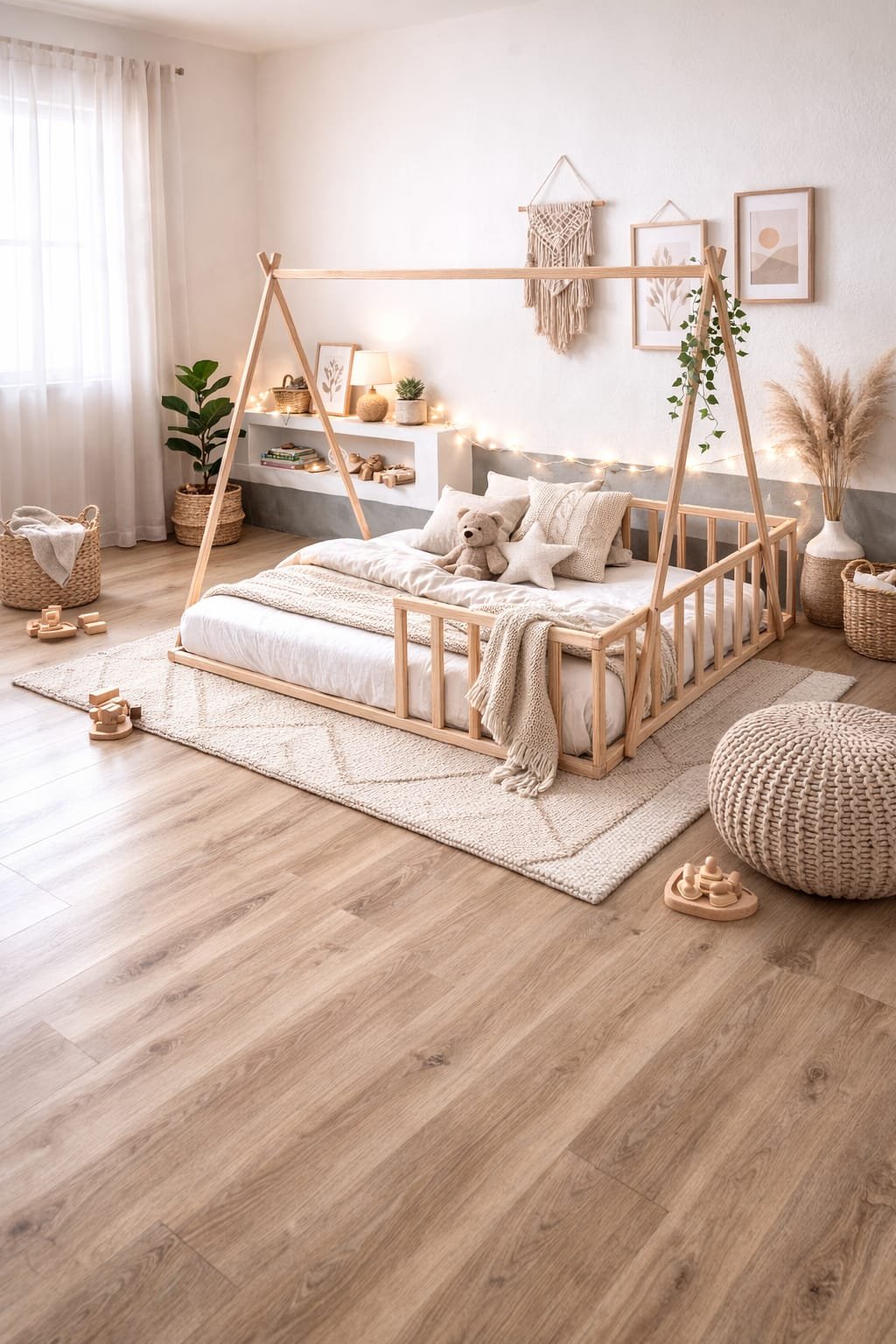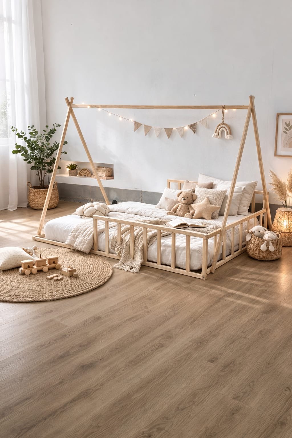 Nossa Cama Montessoriana Cabaninha tradicional, é ideal para miúdos a partir dos 2 anos de idade.