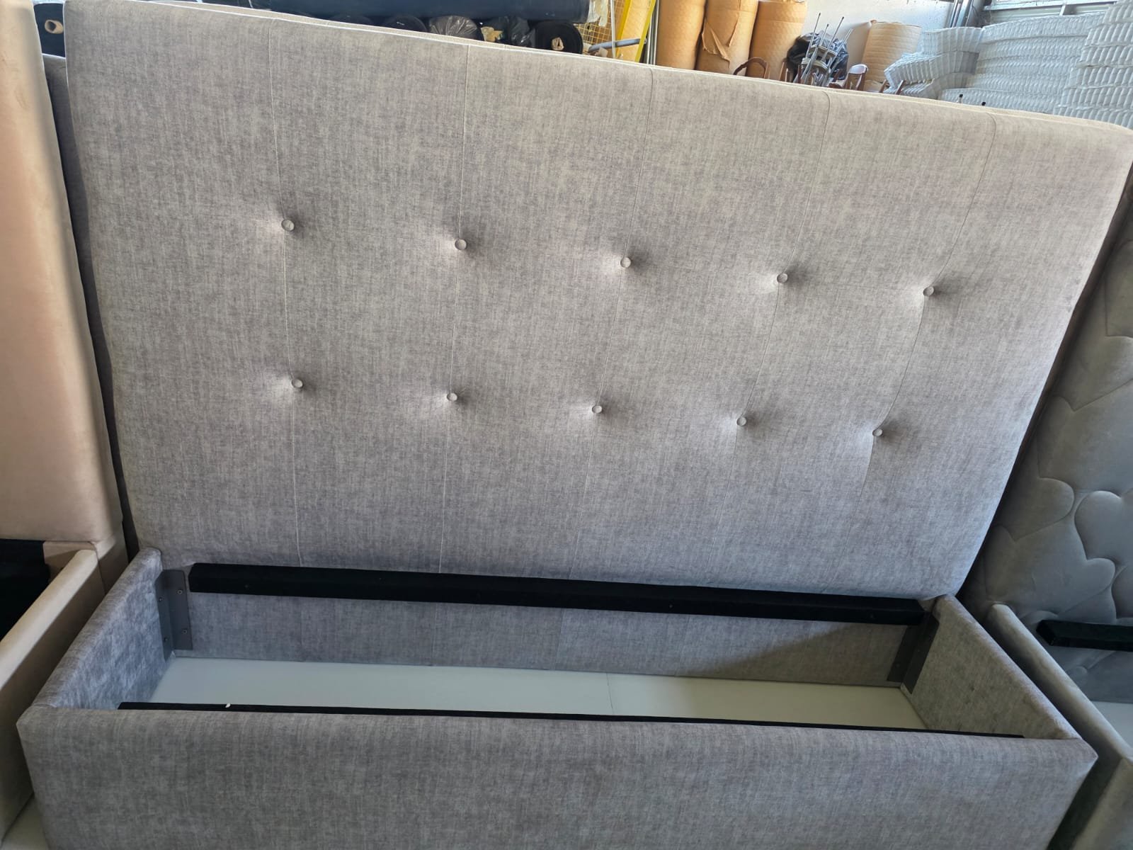 Sua cabeceira estofada leva um design com botões, clássico, que deixará vosso quarto bonito e aconchegante.
