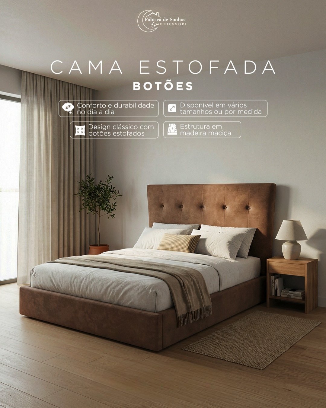 A nossa Cama Estofada Botões é a união perfeita entre o charme clássico e o conforto contemporâneo.